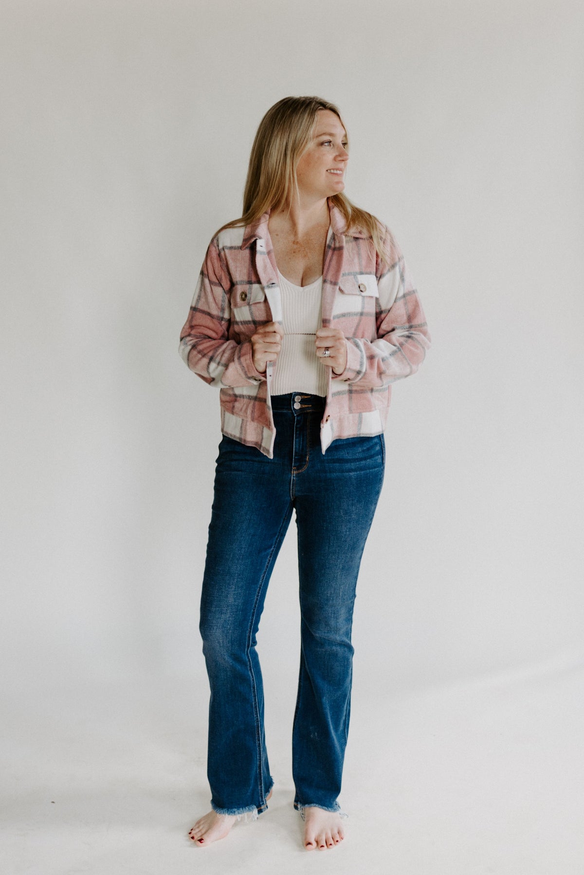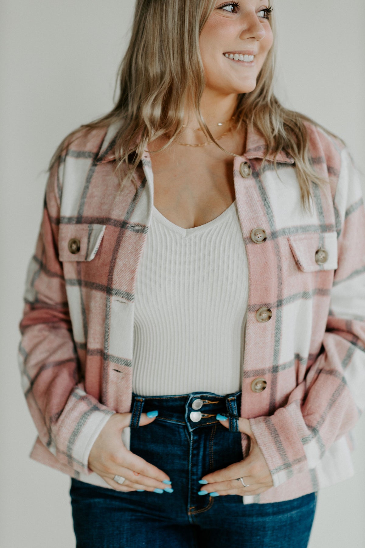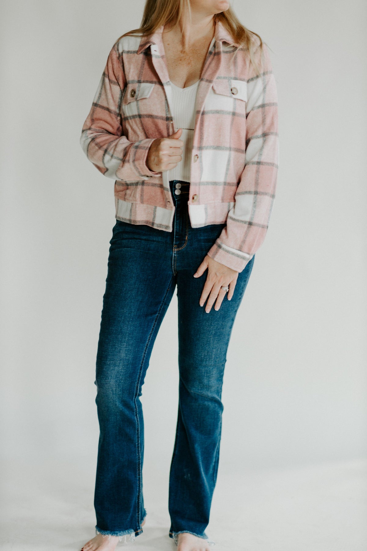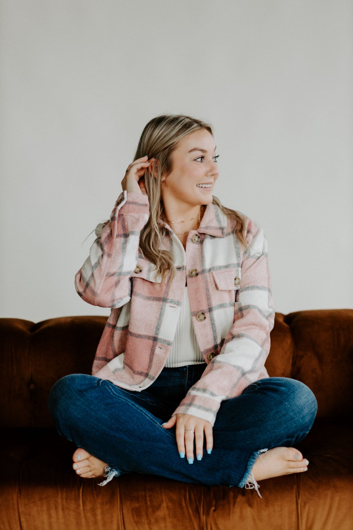 Look no further than this ultra-trendy Pink Plaid Shacket - a must-have for fall! A fashionable fusion of a shirt and jacket, you can rock this crop flannel wherever you go and stay cozy all day long. Get it before it's gone!